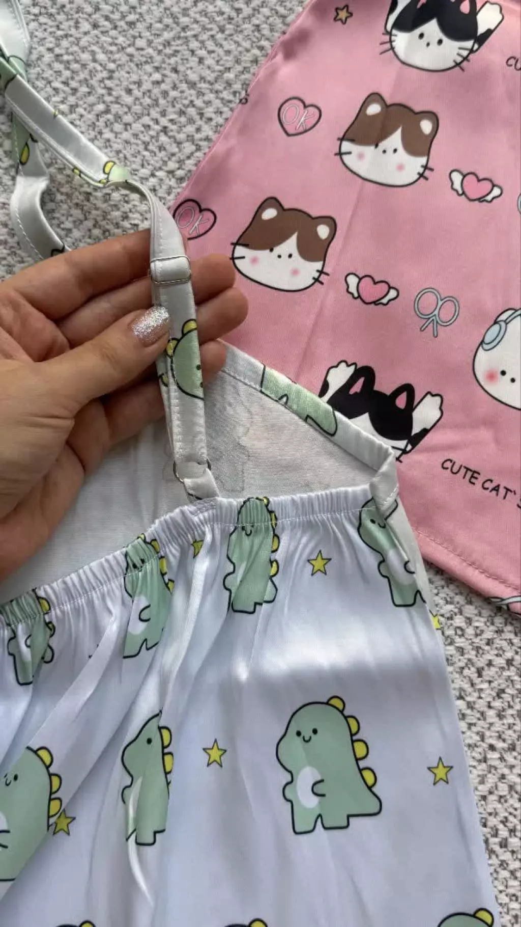لباس خواب سارافون ساتن کوتاه طرحدار زنانه – سایز L تا XXL