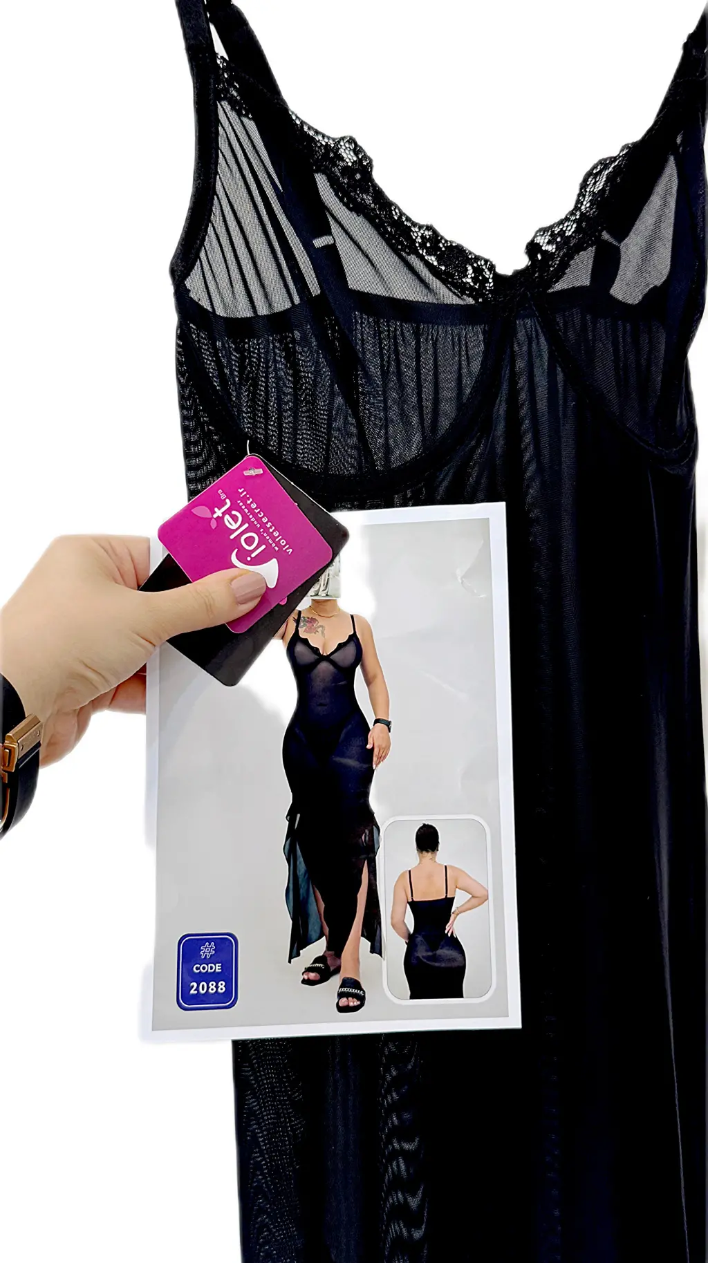 این مدل با تور کش ترک باکیفیت دوخته شده که هم لطافت و هم انعطاف بالایی دارد. طراحی فیتشده با بندهای نازک و برشهای چیندار در پایین دامن، جلوهای رمانتیک و زنانه به استایل شما میبخشد.